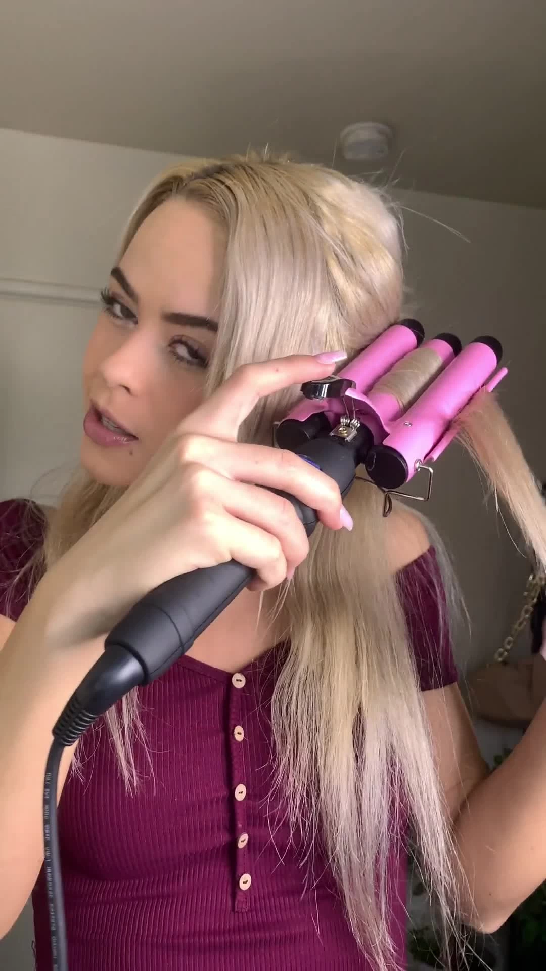 ❥3 barrel hair curling iron, Simple to perform, which mean you can to create loose, huge and lovely “S” waves.