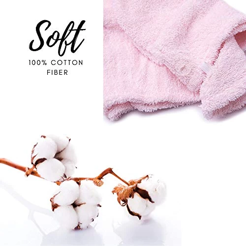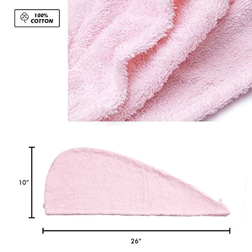 KEEPOZ Hair Towel Wrap Quick Dry 100% Cotton Super Absorbent Turban Head Wrap For Women With Button, Non Microfiber Anti Frizz Hair Products, Hair Cap For Curly, Long & Thick Hair (Pink, 1 Pc)